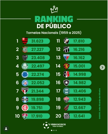 Segundo o pesquisador, o critério principal foi medir a frequência real de torcedores nos estádios, independentemente da divisão disputada. Considerou-se apenas clubes que ultrapassaram a marca de 1 milhão de pagantes. É ressaltado ainda que o objetivo da pesquisa não é apontar quem tem a maior torcida, mas sim retratar a presença histórica do público nos estádios, diferenciando esse dado de pesquisas de opinião tradicionais.